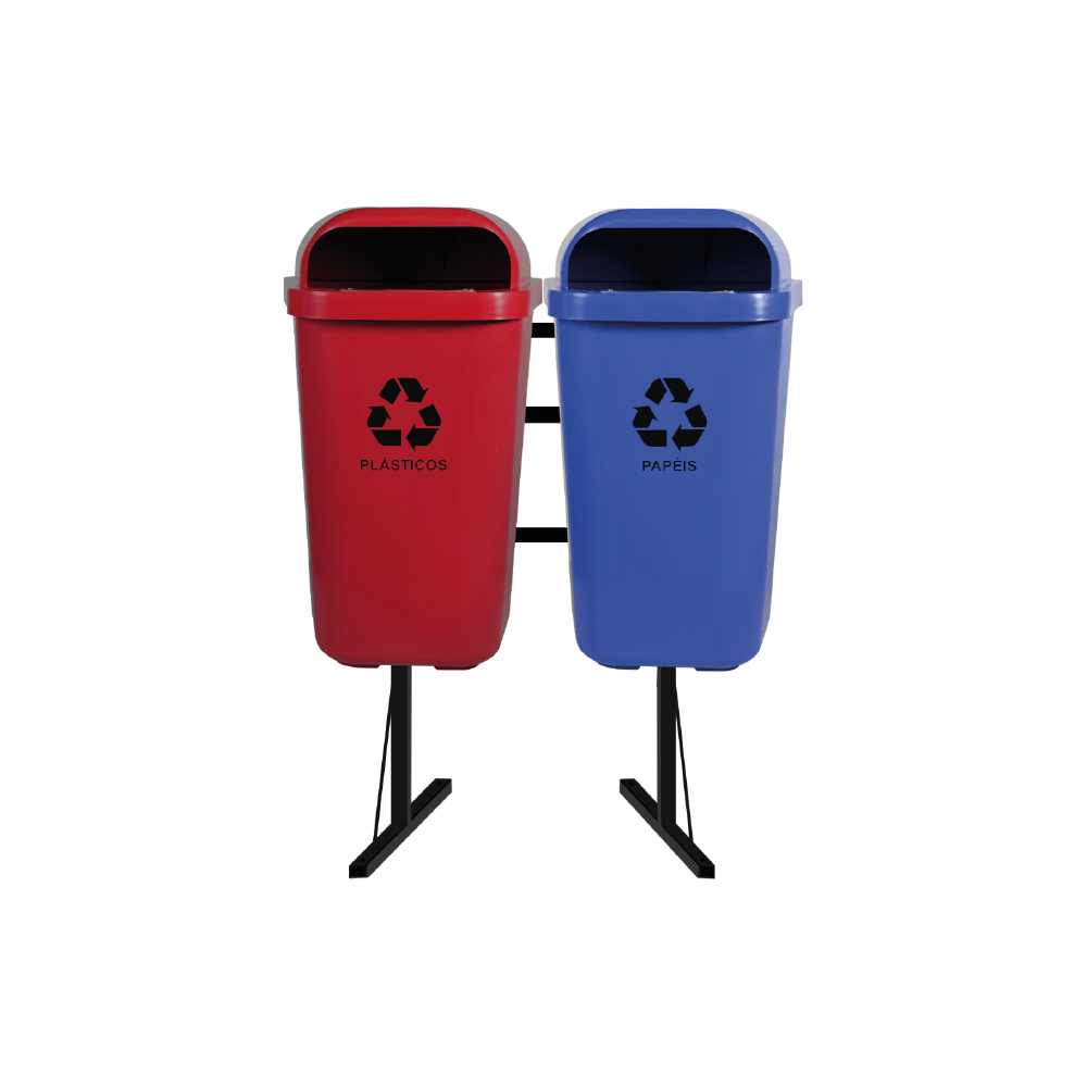 O kit é composto por 2 Papeleiras para Coleta Seletiva 50L – fabricado em Polietileno de Alta Densidade (PEAD) ou Polipropileno (PP).