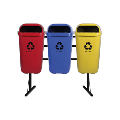 O kit é composto por 3 Papeleiras para Coleta Seletiva 50L – fabricado em Polietileno de Alta Densidade (PEAD) ou Polipropileno (PP).