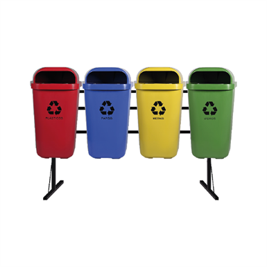 Com alto padrão de qualidade e tecnologia, o Kit com 4 Papeleiras para Coleta Seletiva possui estrutura metálica em tubo de aço carbono retangular de 30mm x 20mm, garantindo maior segurança e durabilidade.