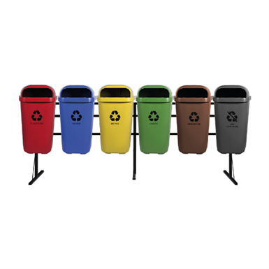O kit é composto por 6 Papeleiras para Coleta Seletiva 50L – fabricado em Polietileno de Alta Densidade (PEAD) ou Polipropileno (PP).
